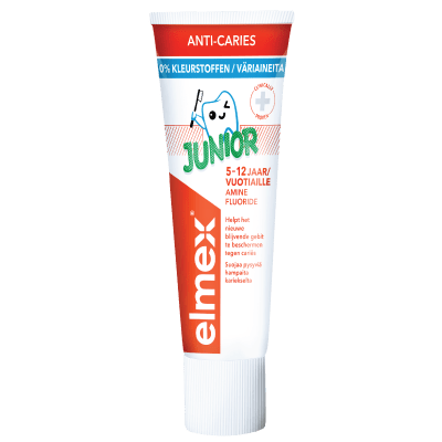 Helpt de tandan in het wisselgebit effectief te beschermen tegen cariës. Geschikt voor kinderen van 5-12 jaar vanwege de speciale milde smaak en het juiste fluoridegehalte (1400 ppm). elmex Junior tandpasta met aminfluoride is speciaal samengesteld om te beschermen tegen gaatjes in het wisselgebit. Door snel een beschermende laag te vormen, remineraliseert het de tanden en helpt het mineraalverlies te voorkomen.